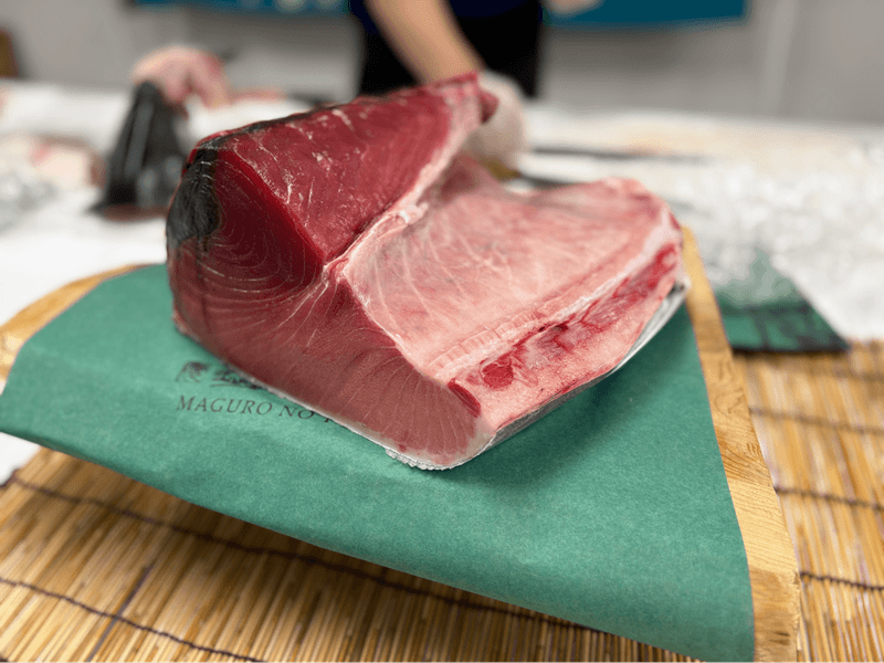 今回は大阪からお寿司の職人さんを招き、目の前でマグロやハマチを捌いていただきました 。