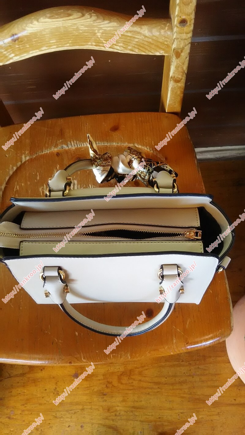 ベージュバッグ→これも臭い。臭すぎる。シミ覚悟で消臭剤入りウエットシートで拭いた。まだ風に当てている最中。作りもだけど、こんなバッグが割引前1万円もする訳ない。ショルダー紐レロレロで無理。