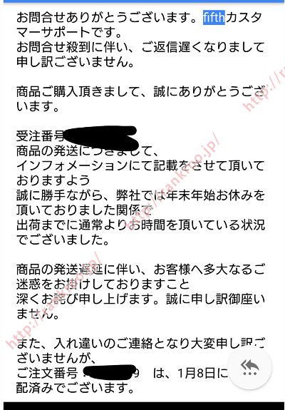 最初は商品が全く届かないことから不審に思い、こちらのサイトを見つけてから、フィフスがハズレなネットショップだったと気づきました。